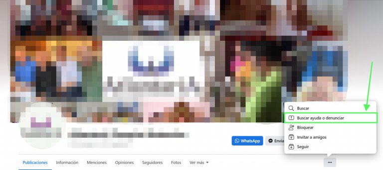 En primer lugar, debemos dirigirnos al perfil de la cuenta de Facebook que queremos denunciar y pulsar sobre los 3 puntitos que se encuentran a la derecha del menú:
